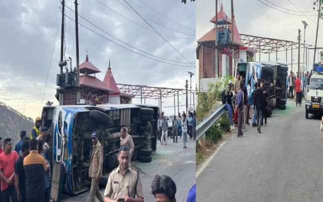 Bus full of passengers overturns in Nainital news: ਅੱਜ ਸਵੇਰੇ ਨੈਨੀਤਾਲ ਵਿਚ ਇਕ ਬੱਸ ਕੰਟਰੋਲ ਗੁਆ ਬੈਠੀ ਅਤੇ ਪਲਟ ਗਈ। ਹਾਦਸੇ ਵਿਚ ਇੱਕ ਵਿਅਕਤੀ ਦੀ ਮੌਤ ਹੋ ਗਈ ਅਤੇ 13 ਤੋਂ ਵੱਧ ਯਾਤਰੀ ਜ਼ਖ਼ਮੀ ਹੋ ਗਏ, ਜਿਨ੍ਹਾਂ ਵਿੱਚੋਂ ਸੱਤ ਦੀ ਹਾਲਤ ਗੰਭੀਰ ਹੈ। ਬੱਸ ਵਿੱਚ 15 ਤੋਂ 16 ਲੋਕ ਸਵਾਰ ਸਨ। ਬੱਸ ਹਲਦਵਾਨੀ ਤੋਂ ਪਿਥੌਰਾਗੜ੍ਹ ਦੇ ਡੀਡੀਹਾਟ ਜਾ ਰਹੀ ਸੀ।